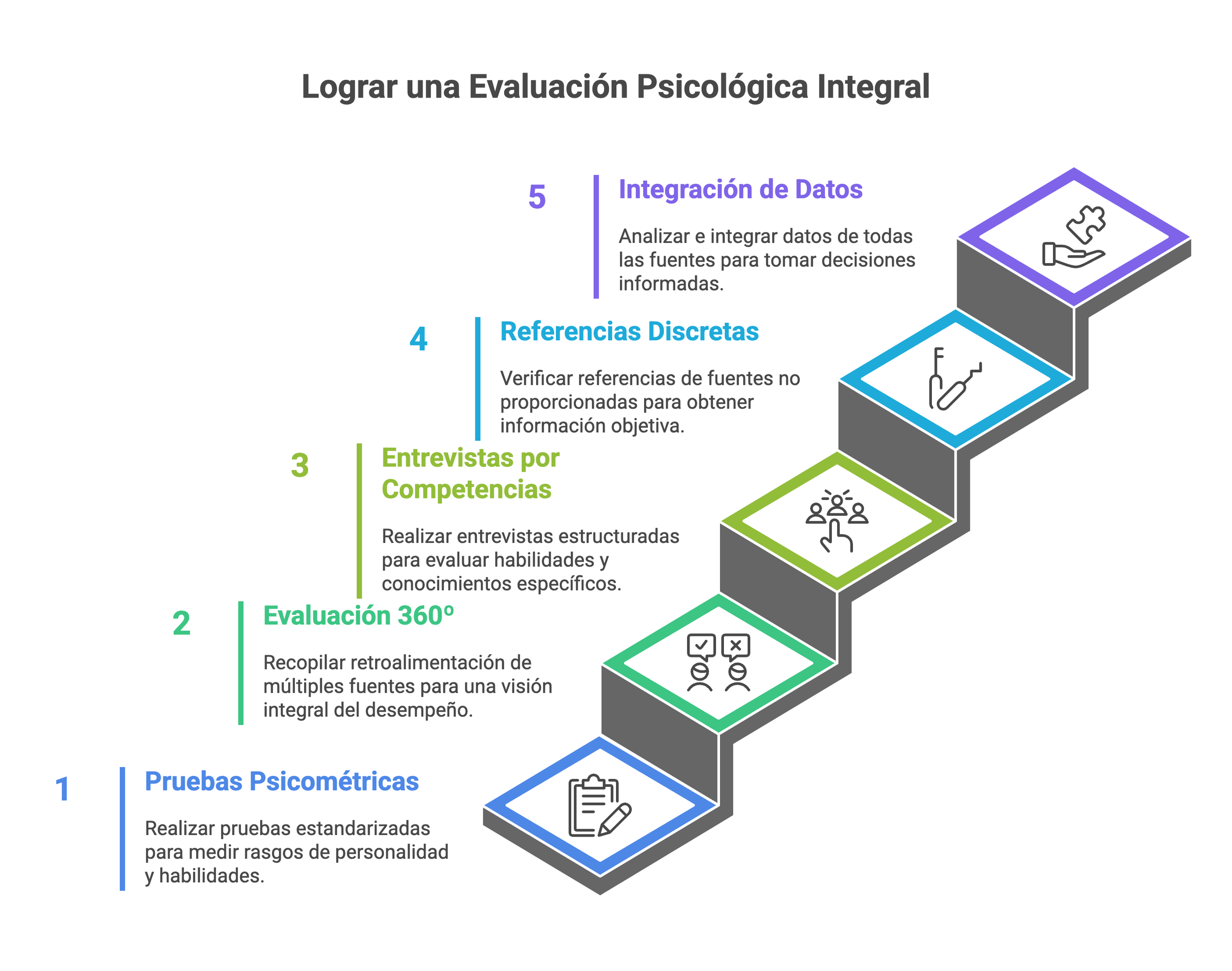 Utilizamos un conjunto de herramientas de clase mundial, probadas para predecir el éxito. Esto incluye Hogan y DISCpara el análisis psicométrico, Evaluaciones 360° para una retroalimentación integral, entrevistas estructuradas por competencias y un riguroso proceso de referencias discretas para validar la información objetivamente.